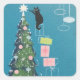 Pegatina Cuadrada Gato negro vintage decorando árbol de Navidad
