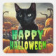 ilustracion de un gato negro de brujas en un campo de calabaza