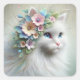 Pegatina Cuadrada Gato Persa Blanco Con Laurel Floral