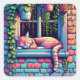 Pegatina Cuadrada Gato somnoliento en la ventana hasta el arte