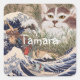 Pegatina Cuadrada Gato supernatural en la gran ola