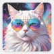 Pegatina Cuadrada Gato usando gafas en el espacio