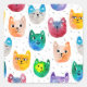 Pegatina Cuadrada Gatos acuarelas y amigos