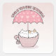 Pegatina Cuadrada Gatos cortos en la taza bajo el paraguas