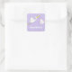 Pegatinas de ducha de bebé con un ilustracion personalizado de una cigüeña que da a luz a un bebé. En tonos morados y blancos, es neutral desde el punto de vista del género, tan ideal para un niño o un chica.