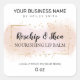 Un suave diseño de acuarela rosa con un marco purpurina dorado para el bálsamo labial casero, brillo, exfoliaciones y otros tratamientos nutritivos para los labios.