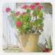 Geranio de color rojo en flor frente a la pared de piedra en Chipre