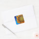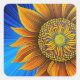 Pegatina Cuadrada Girasol ruso y soleado en azul
