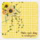 flor de sol y ramo de hiedra sobre fondo de gingham blanco y amarillo