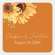 Estas pegatinas de boda románticas presentan un diseño floral. El fondo es un naranja quemado elegante con girasoles dorados en acuarela. Un delicado ramo silvestre se representa en la parte superior izquierda, con los nombres de la pareja y la fecha de la boda impresos debajo.