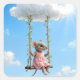 Pegatina Cuadrada Girl Mouse On a Summer Swing