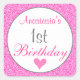 La purpurina rosada brillante y glamurosa despierta a la princesa pegatina cuadrado de primer cumpleaños. Puede añadir fácilmente el nombre de su elección y cambiar el color y el tipo de letra utilizando la opción personalizar.