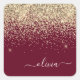 Pegatina Cuadrada Girly Monograma Glam Purpurina de oro de Borgoña