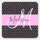 Pegatina Cuadrada Glam Black Metallic Pink Honeycomb Monograma Nombr