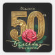 Pegatina Cuadrada Glam Chic Negro Oro Rojo Rosa Floral 50 Cumpleaños