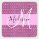 Pegatina Cuadrada Glam Fuchsia Monograma de Honeycomb rosa metálico
