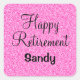 Pegatina Cuadrada Glam Happy Retirement Hot Pink Purpurina Sparkle