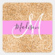 Pegatina Cuadrada Glam Pink & Copper Purpurina Parkles Monograma Nom