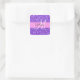 El purpurina púrpura y rosa de las lunas deslumbra el nombre del monograma blanco y el pegatina cuadrado inicial. Su nombre personalizado y su monograma están escritos en un guión elegante con letras a mano con un fondo rosado. Puede cambiar el color del texto y el estilo y el tamaño del tipo de letra mediante la opción personalizar. ¡Un regalo perfecto de cumpleaños o Navidades!