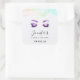 Pegatina Cuadrada Glamorosos Ojos Púrpuros y Flores Acuarela