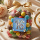 Celebrate a magical milestone with this glamorous Sweet 16 birthday partysticker! Featuring stunning 3D-style faux rainbow glitter numbers, elegant script typography, and a festive background of blue and gold balloons with sparkling bokeh lights. This elegant and modern design is perfect for adding a luxurious touch to your daughter's sixteenth birthday celebration. Use these beautiful blue and gold labels as envelope seals for your invitations, chic decorations for your party favors, or stylish additions to your gift bags. Easily edit the name and date to perfectly match your beautiful sweet sixteen party aesthetic!