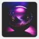 Globe transparente púrpura con Pegatina cuadrado de paisajes montañosos