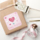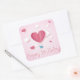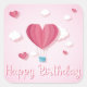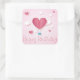 Pegatina Cuadrada Globo de aire del corazón rosa Feliz cumpleaños ro