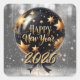 Pegatina Cuadrada Globo de Año Nuevo con Brillo Dorado con Resplando