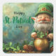Pegatina Cuadrada Gnome Leprechaun y Pot of Gold St.