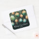 Pegatina Cuadrada Gold Green Merry Christmas Ornaments
