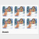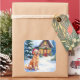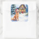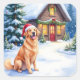 Pegatina Cuadrada Golden Retriever Rustic Cabin Santa Hat Christmas