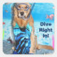 Estos pegatinas cuentan con un recuperador de oro como un snorkeler bajo el mar. El mensaje dice: "¡Entren justo!".