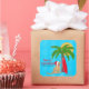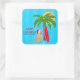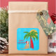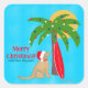Pegatina Cuadrada Golden Surf Dog Palm Tree Sunshine Christmas
