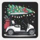 Pegatina Cuadrada Golf Cart Christmas Tree Lights Xmas Sport Golfer