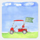 Pegatina Cuadrada Golf Feliz cumpleaños con carrito de golf Papel en