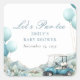Pegatina Cuadrada Golf Let's Par-tee Blue Baby Shower