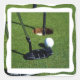 En el green se ve una cancha de golf y una bola que hacen que el par esté bordeado de un verde golf.