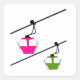 Pegatina Cuadrada Góndolas rosas y verdes con esquís