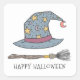 Pegatina Cuadrada Gorra de brujas Broom stick Halloween