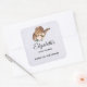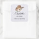 Pegatina Cuadrada Gorra marrón de vaca con Fiesta de flores rosas