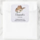 Pegatina Cuadrada Gorra marrón de vaca con flores rosadas