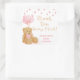 Agradable ducha personalizada de bebé gracias a los pegatinas que incluyen un oso de peluche marrón color agua dulce con un arco rosado y globos de corazón rosado con un falso borde de garland purpurina rosa y el mensaje GRACIAS MUCHO EN una festiva tipografía de escritura caligráfica. AYUDA: Para obtener ayuda con la modificación/personalización del diseño, la transferencia del diseño a otro producto o si desea coordinar elementos para su experiencia con la ducha de bebé, póngase en contacto con el diseñador ANTES DE PEDIRLE a través de Zazzle Chat o makeitaboutyoustore@gmail.com.