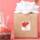 Pegatina Cuadrada Gracias Bday, Hibiscus Tropical Rojo y Hoja de Oro