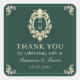 Elegante boda verde esmeralda y barroco dorado gracias pegatina con ornamentadas floraciones vintage e iniciales de monograma de personalizable. Perfecto para sellar sobres de boda, bolsas de favores, cajas de regalo y añadir un toque personalizado a su celebración. Un accesorio atemporal para parejas que planean una lujosa temática de boda esmeralda y dorada.