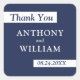 Pegatina Cuadrada Gracias Boda geométrico azul de la Marina Moderna