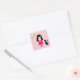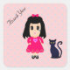 Pegatina Cuadrada Gracias Chica y gato con estrellas en rosa