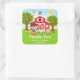 Pegatina Cuadrada Gracias Cumpleaños Rojo Granja Chica Pelo Marrón