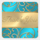 Pegatina Cuadrada Gracias Elegante Filigree Turquesa Azul Oro