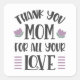 Muestre su aprecio con este elegante pegatina del Día de la Madre que presenta el conmovedor mensaje, "GRACIAS MAMÁ POR TODO SU AMOR". Diseñado con un estilo de letra atrevida y alegre, y acentuado con delicadas flores violetas, este diseño irradia calidez y gratitud. Ya sea en regalos, tarjetas o decoraciones, ¡es una hermosa manera de celebrar el amor y el cuidado interminables que las madres dan cada día!