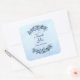 Pegatina Cuadrada Gracias & Nombres de Novia y Novio Peonía Azul